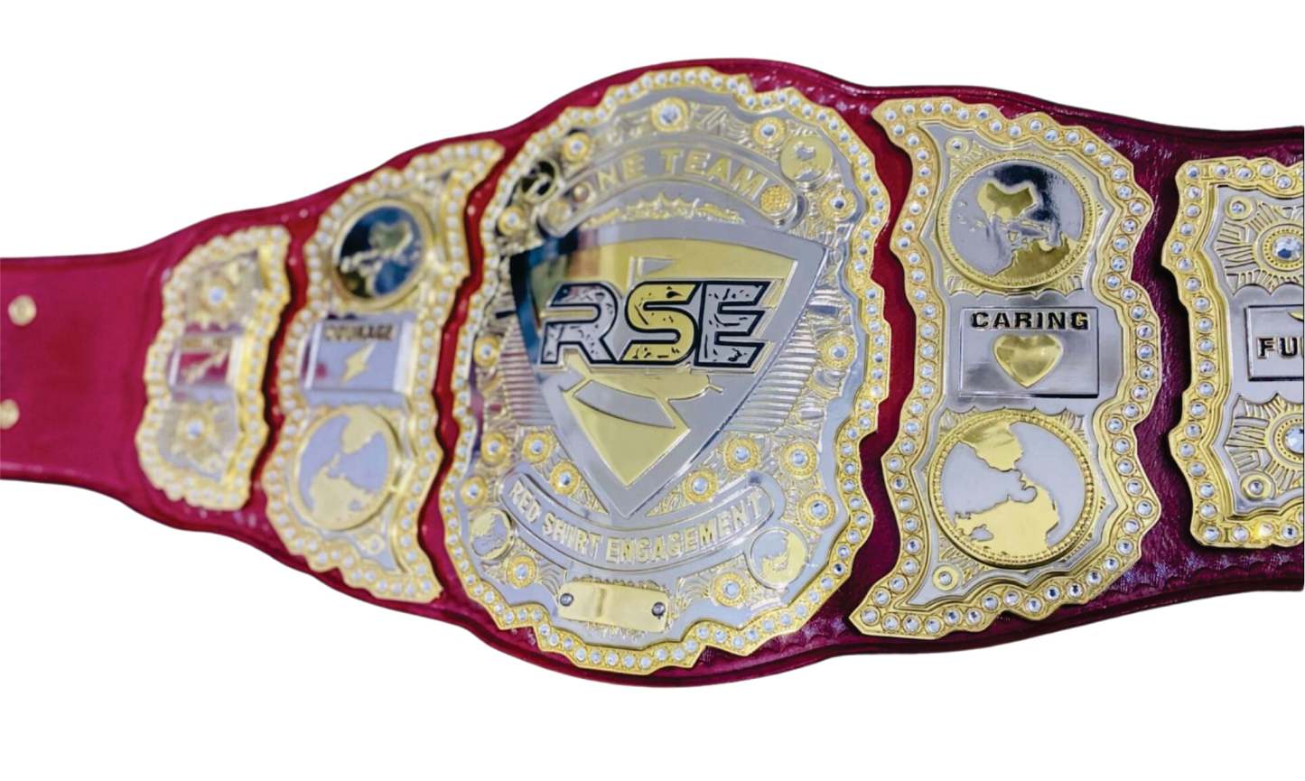 One Team Red Shirt Engagement Gold Championship Belt