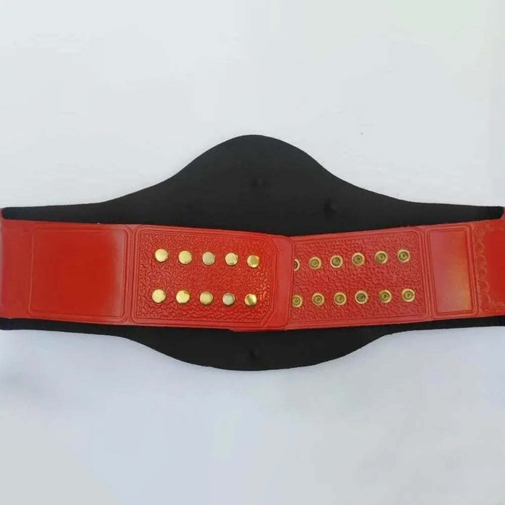 The plates are made from sturdy zinc alloy. These plates feature deep etching for extra depth. The gold finish shines under any light. Each stone on the belt adds sparkle and realism. The red synthetic leather strap is flexible and strong. It feels comfortable in your hand or on your shoulder.